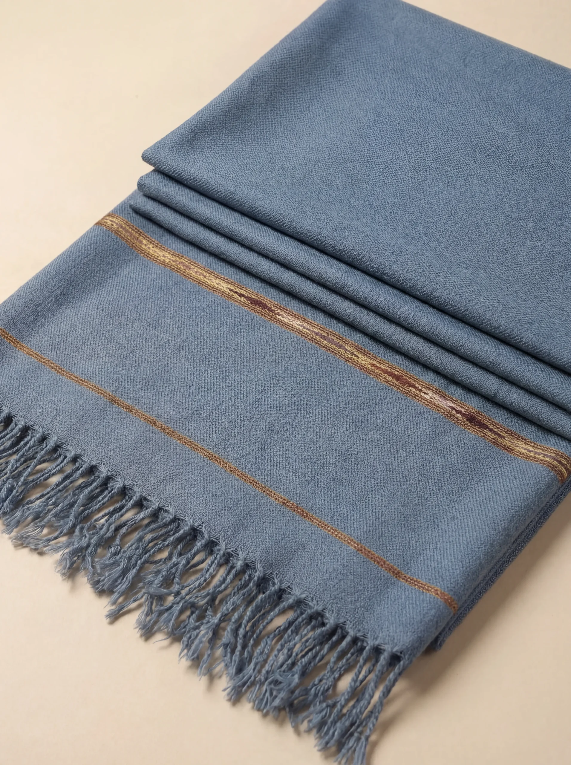 Add a calm and clean winter look to your wardrobe with the Premium Handmade Shawl in Dusty Blue. Skilled artisans weave each shawl with focus on comfort and neat finish. The soft wool gives steady warmth while staying light on the shoulders. The dusty blue color offers a cool and balanced tone that works well with daily outfits and formal clothing. The smooth texture feels comfortable on the skin and holds its shape with use. Each shawl is handmade so every piece shows careful work and lasting quality. A solid choice for men who want warm fabric and a fresh winter shade.